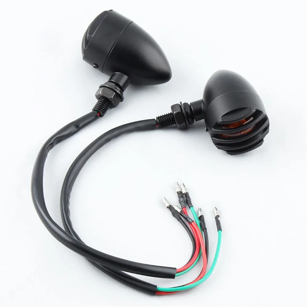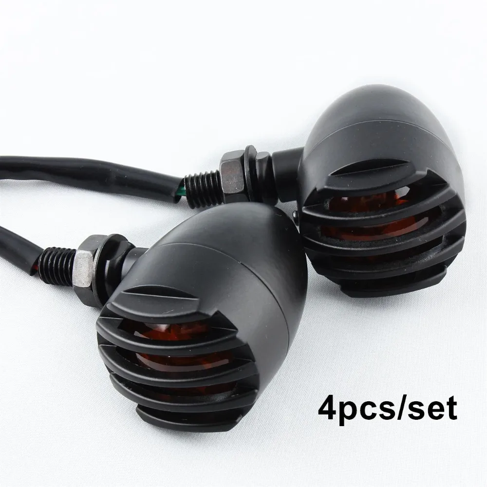 BEST 4Pcs Motorcycle Retro Black Grill Bullet Bulb Lamp Turn Signal Indicator Light Universal For Harley